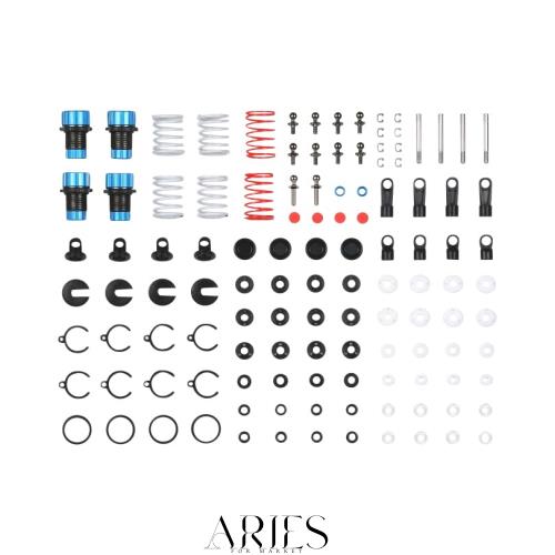 【RCカーの性能アップやセッティングに役立つパーツです】 ダンパーシリンダーやピストンロッドのサイズをMシャーシ用に最適化した高性能オイルダンパーです。 アルミシリンダーは内部を鏡面処理し、潤滑性に優れたブラックコートを施しました。 ピストンはフッソ樹脂削り出し製で3穴タイプと2穴タイプを選択可能。 ソフトシリコンOリングとフッソ樹脂製2mmスペーサーでダンパー下部をシールしてオイル漏れを防ぎ、任意の位置で固定できる樹脂削り出し製のスプリングリテーナーも装備。 スプリングは硬さの異なる3種類をセットしました。
