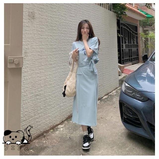 tシャツ シンプル 春夏 セットアップ 秋 スカート 春服 ロングスカート ファッション ルームウエア スリム レディース セットアップ 半袖 韓国風 快適 カジュアル 2点セット 薄手 ストレッチ 春 秋服 上下セット スウェット きれいめ かわいい 着?せ ギフト