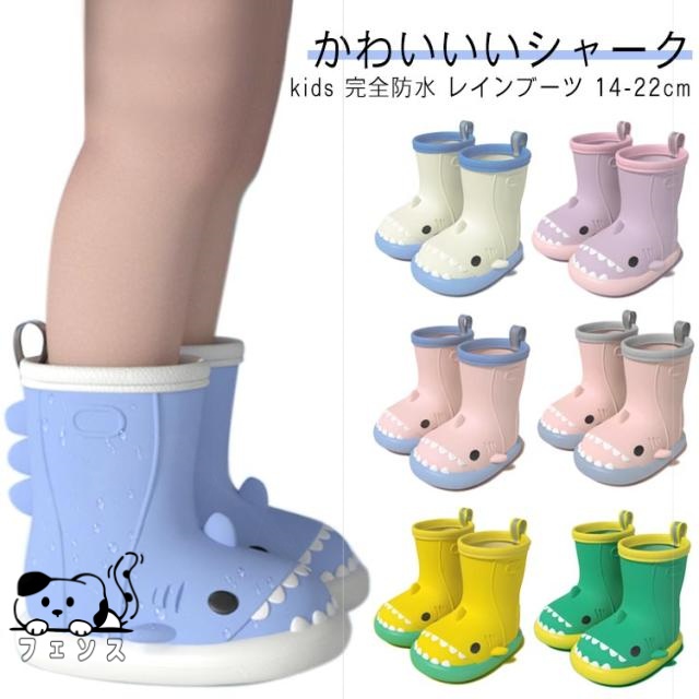 | かわいいいシャーク kids 完全防水 レインブーツ 14-22cm 取り外しができるインソールで便利 雨道でも安心♪縫い目がないので防水性 濡れた床も滑りにくい、クリップ力が強い靴底 長時間歩いても疲れにくい柔らかい素材 | |