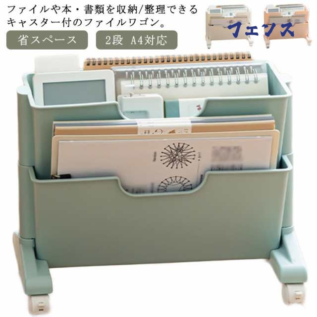 | ファイルや本・書類を収納/整理できるキャスター付のファイルワゴン。 仕切り付きで仕分けができる取り出しやすい仕様。 2段でデスク下用収納にも最適。オフィスや家庭向けの、本棚・ファイル収納に。 デスク周りに置いておきたい参考書籍を収納し、デスクで作業をしながら使いたいときに便利です。 荷物置きとしてもOK! ファイルやカバン以外にも防災グッズやタオルケット、除菌スプレーなどの荷物置きとしても活用できます。 ファイルとカバンや小物類も一緒まとめられるので、デスク上も足元もすっきり空間を実現できます。 移動に便利なキャスター付きなので、掃除や物を取り出す際にも楽に動かすことができます。 | |