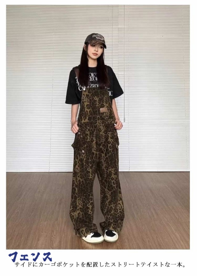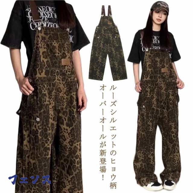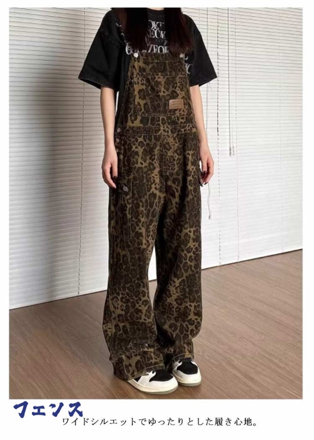サロペット 冬 ヒョウ柄 春 オーバーオール 作業服 秋 レディース ストリート系 ロングパンツ サロペット 大きいサイズ つなぎ レオパード オールインワン カジュアル おしゃれ ワークパンツ
