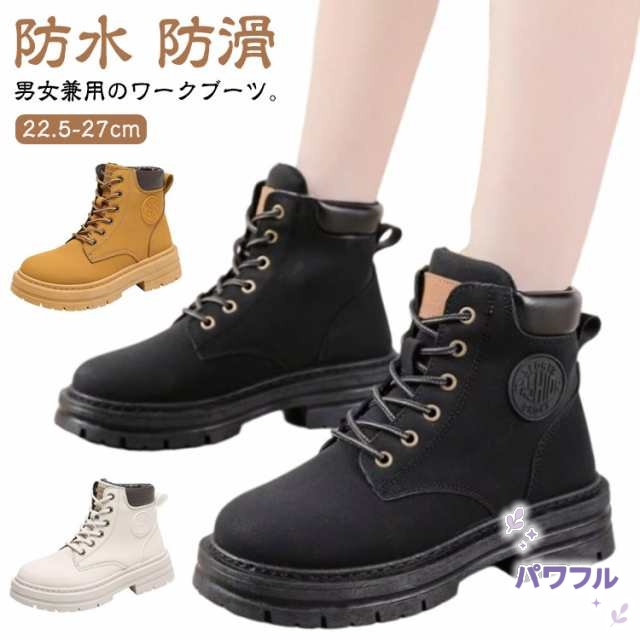 【パワフル】メンズ マウンテンブーツ レディース ワークブーツ ハイカット イエローブーツ PUレザー ショートブーツ ラウンドトゥ 厚底 靴 シューズ 編み上げ レースアップ 防水 防滑 男女兼用 イエローブーツ ブラック イエロー 大きいサイズ