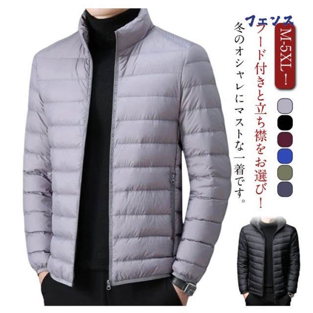 | M-5XL!フード付きと立ち襟をお選び!冬のオシャレにマストな一着です。 中綿はふんわり柔らかな超極細ファイバー。優れた保温力と軽量感を兼ね備え、まるでダウンのような暖かさのエコ素材を使用。 シルエットは適度にフィット感のあるスリムなシルエット。 ネックは防風性に優れたスタンドカラーのハイネック仕様 肌寒い季節はアウターとして、寒さが厳しい時はコートインのインナーダウンとして着回しができます。 カジュアルなコーデだけでなく、通勤などのビジネスシーンにも活躍するアイテムです。 | |