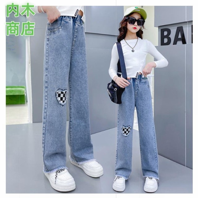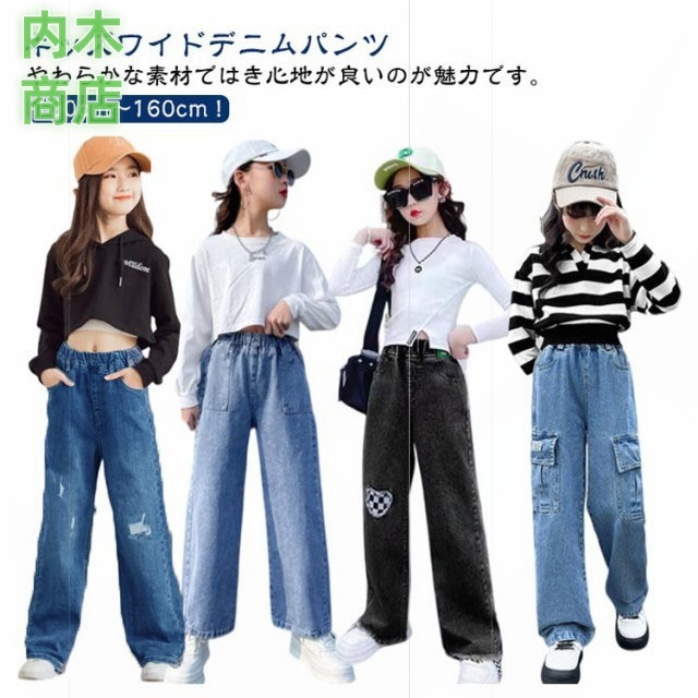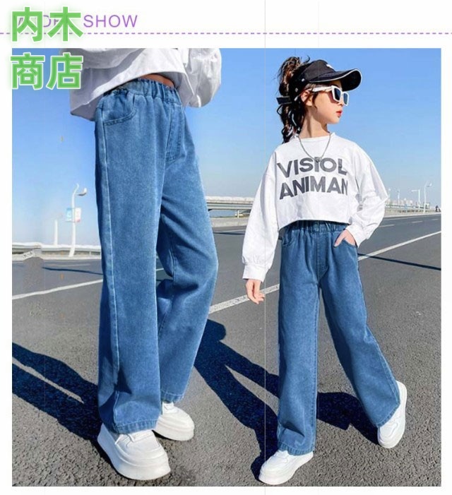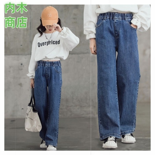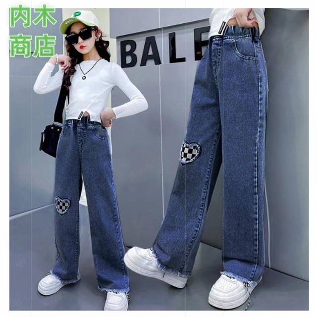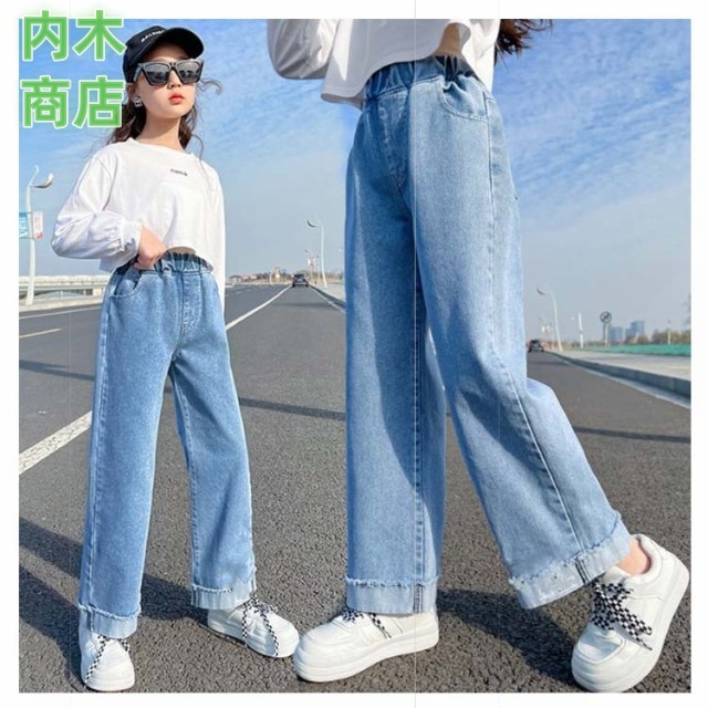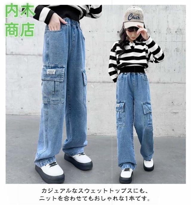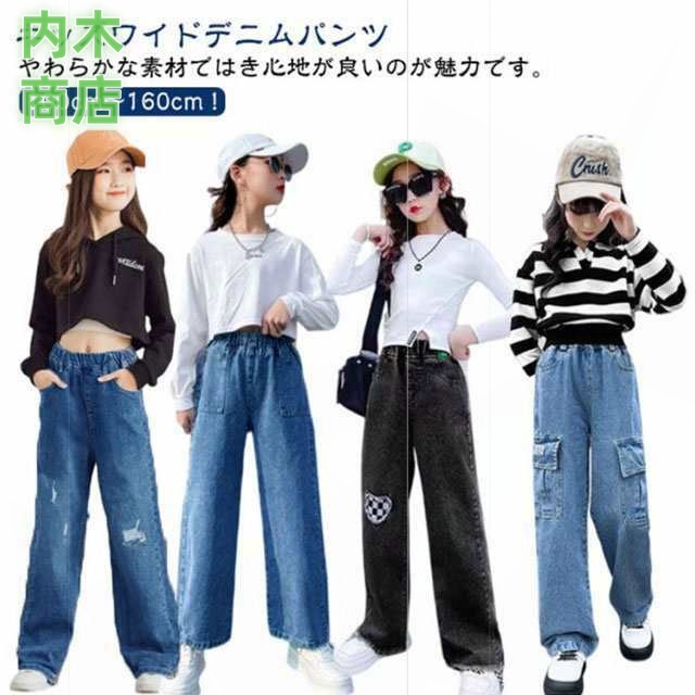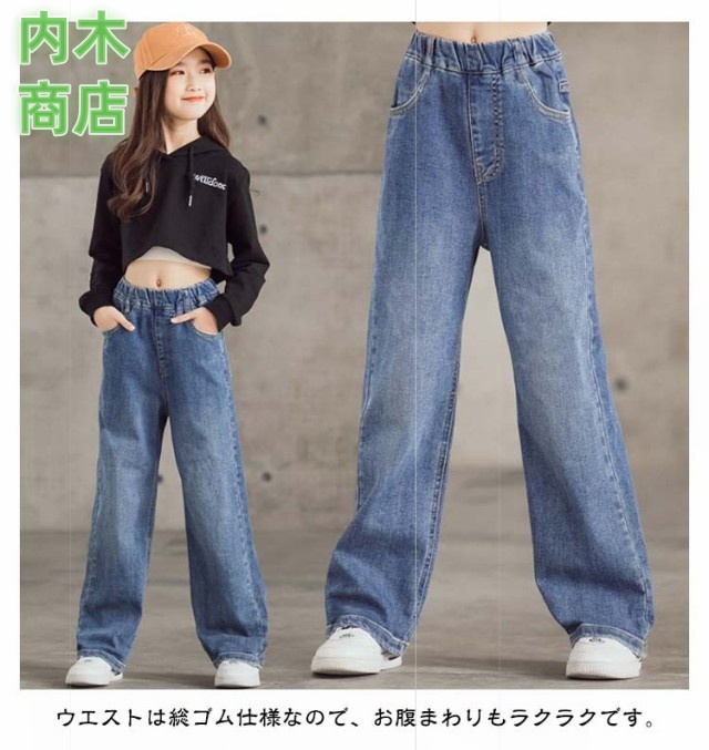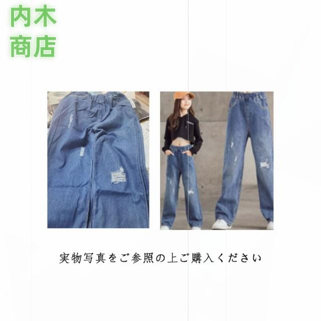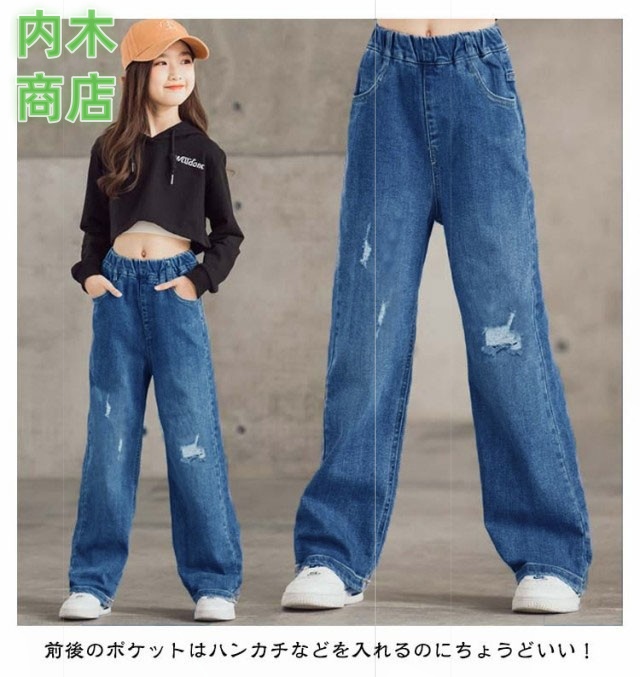 ロングパンツ 秋 ジュニア キッズ ダンス ジーパン ウエストゴム デニムパンツ 韓国子供服 長ズボン 110 中学生 ワイドパンツ ジーンズ 160 ダメージ 女の子 小学生 衣装 送料無料 130 春 120 100 おしゃれ 冬 150 140 ジュニア 子供用パンツ