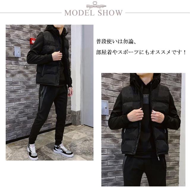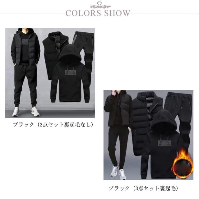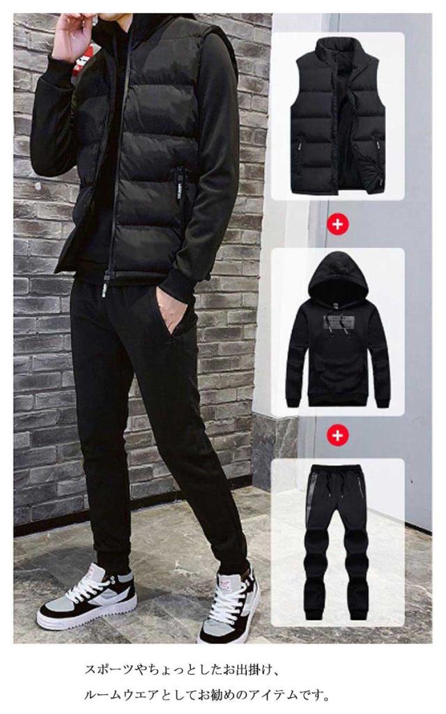 | パーカー+中綿ベスト+スウェットパンツ 3点セット。 柔らかな裏地で心地よくあったかい。肌触りが気持ちイイ抜群の着心地 柔らかな肌触り,保温性も高く、秋冬シーズンにおすすめの一着です。 普段使いは勿論、部屋着やスポーツにもオススメです! スポーツやちょっとしたお出掛け、ルームウエアとしてお勧めのアイテムです。 | |