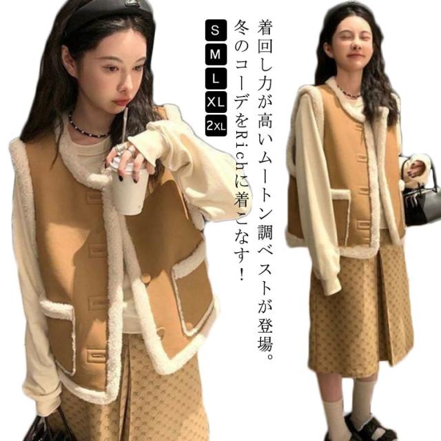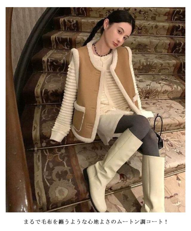 ボア ベスト レディース ボアベスト もこもこ 秋冬 前開き アウター ムートン コート ムートンコート ムートン調 ボアアウター 秋 冬 トップス ジレ おしゃれ 羽織り きれいめ もこもこ トップス ノースリーブ きれいめ カジュアル