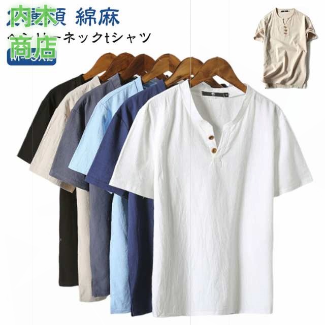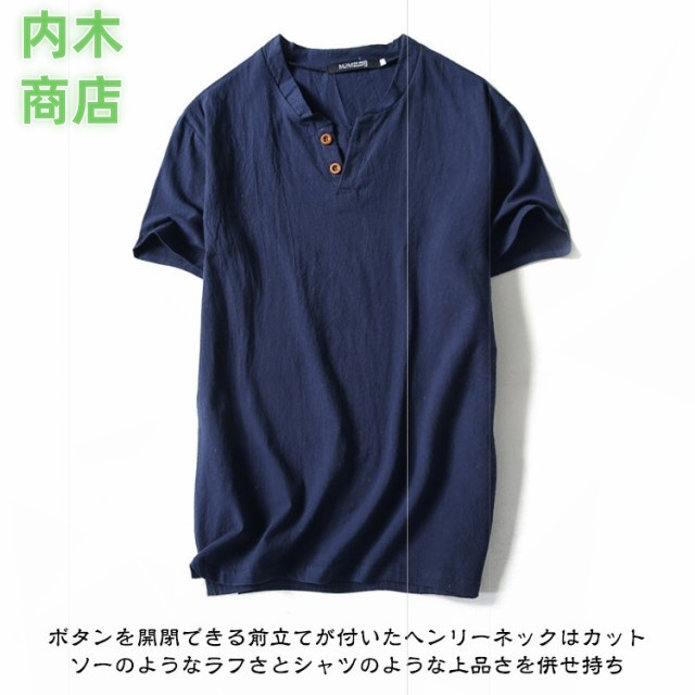 コットン 夏 大きいサイズ リネン ヘンリーネック 夏物 ネック ヘンリーネックシャツ メンズ ティーシャツ 綿麻 ルームウェア 父の日 シャツ シンプル メンズファッション プレゼント ボタン 白シャツ 半袖 おしゃれ 半袖シャツ 無地