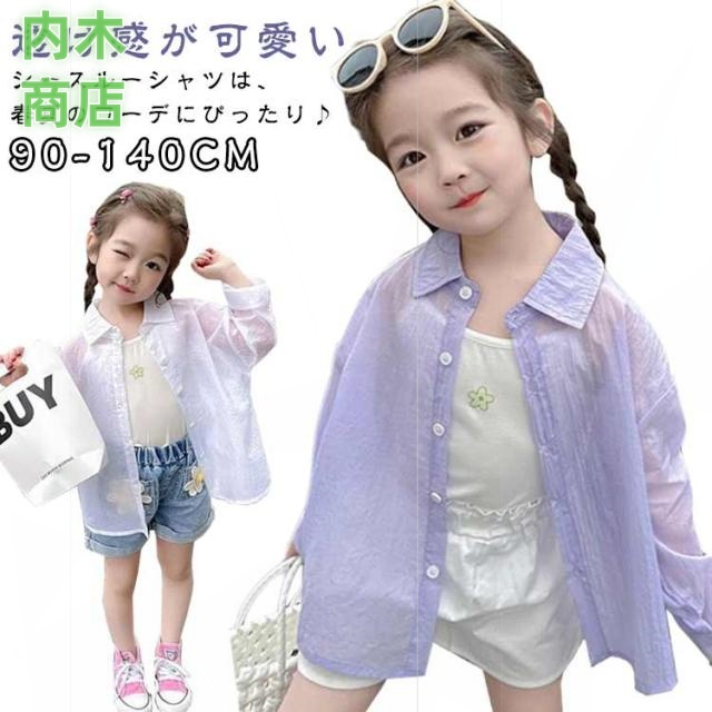 紫外線対策 シースルー 冷房対策 ブラウス 小学生 キッズ服 シンプル 春夏 羽織り 子供服 シアー 小学生 シャツ 長袖 シアーシャツ 女の子 ガールズ 透け感 トップス 可愛い おしゃれ 薄手