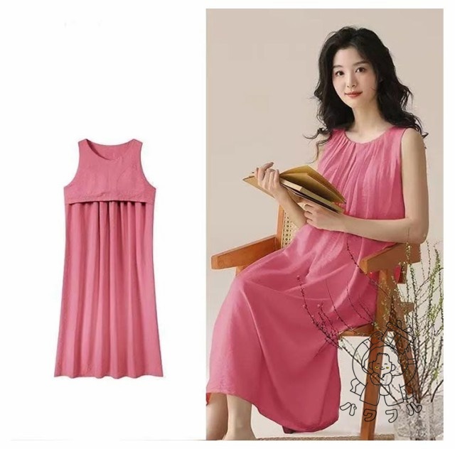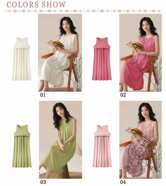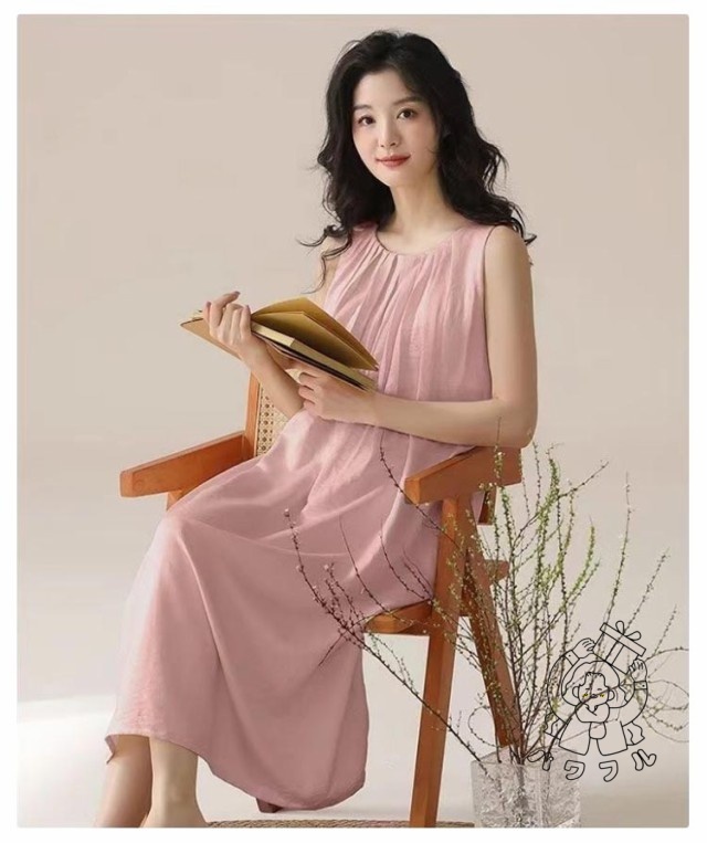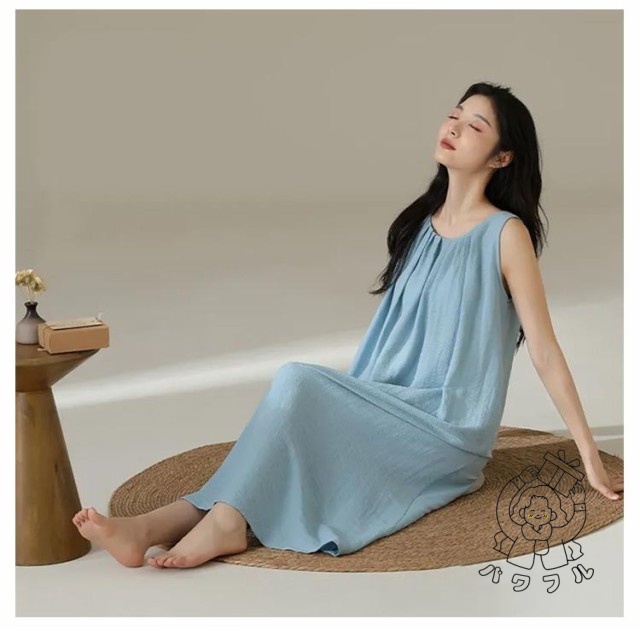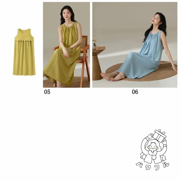 | シンプルなカップ付きノースリーブワンピース。 上品見えするひざ下丈のミディ丈ワンピース部屋着としても肌着としてもお使いいただけます。 汗をかいてもサッと吸収してくれるので蒸れにくく、お風呂上りにも気持ちの良い素材です。 | |