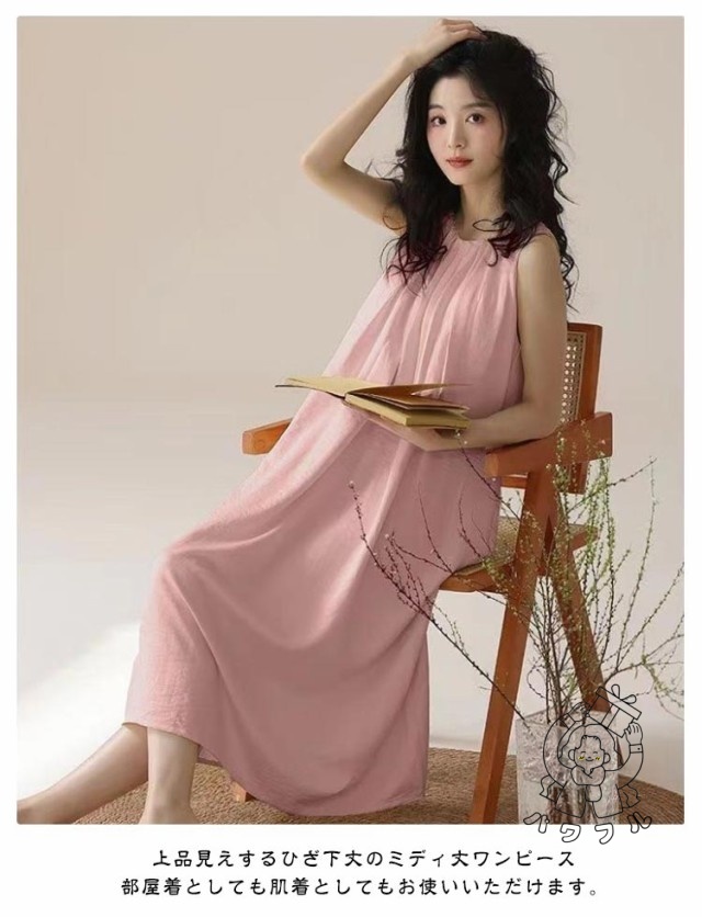 【ほっち】送料無料 ノースリーブ カップ付き ワンピース タンクトップ 部屋着 20代30代 Aライン ブラカップ付きワンピース キャミワンピ 膝下 ルームワンピース ルームウェア 外出 パジャマ インナー おしゃれ ブラカップ付きワンピース 40代 50代 タンクワンピース
