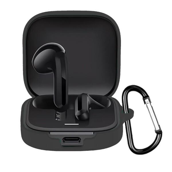 BUITFOU For Redmi Buds 6 ケース 柔らかい シリコン製 落下防止 キズ防止 耐衝撃 防塵 軽量 装着充電可能 カラビナ付き 紛失防止(ブラック)