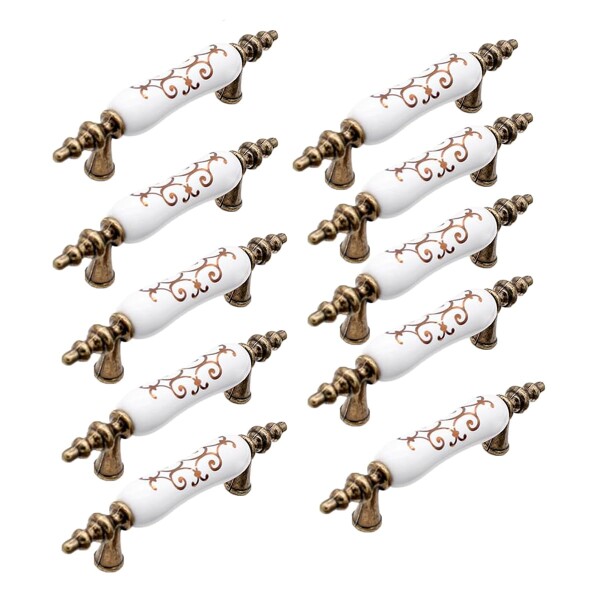 6個セット セラミック 取っ手 取手 ファッショ アンティーク DIY 食器棚 キャビネット ハンドル ドアノブ 装飾 引き出しつまみ 手すり 家具 ベッドルーム用 ネジ付き (こどうしょく, 76mm)