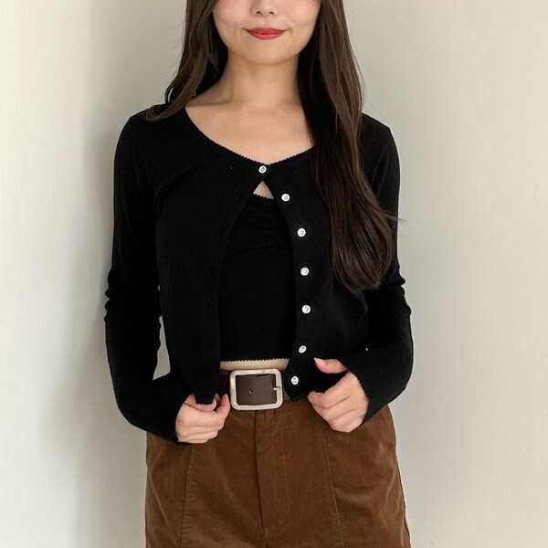 同素材のカーディガンとビスチェがセットになったアイテム。