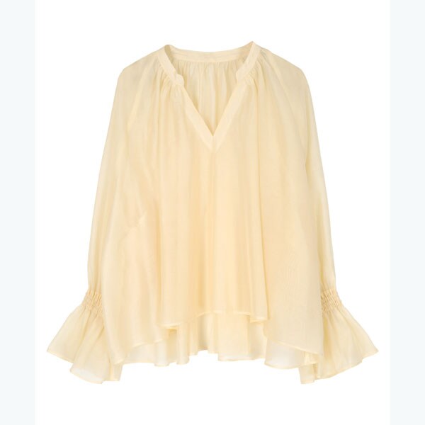 スキッパーの襟ぐりが抜け感を演出してくれます。