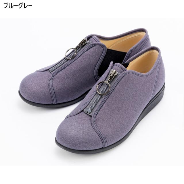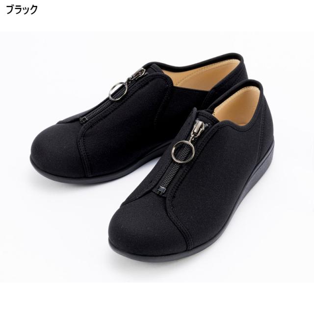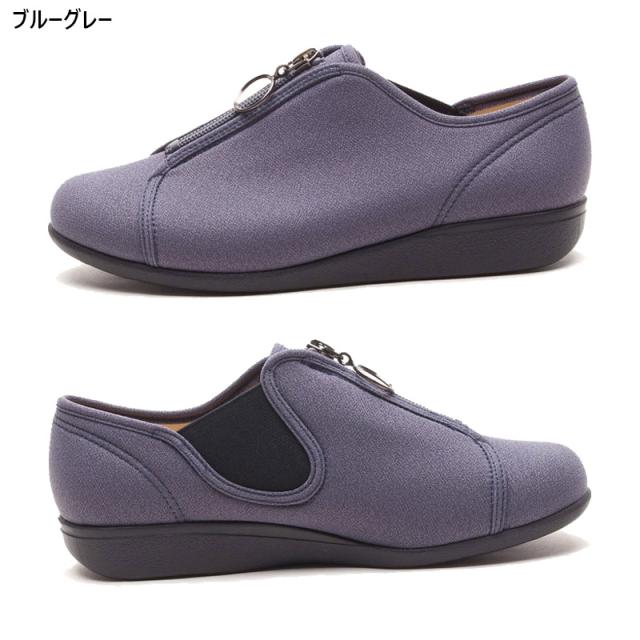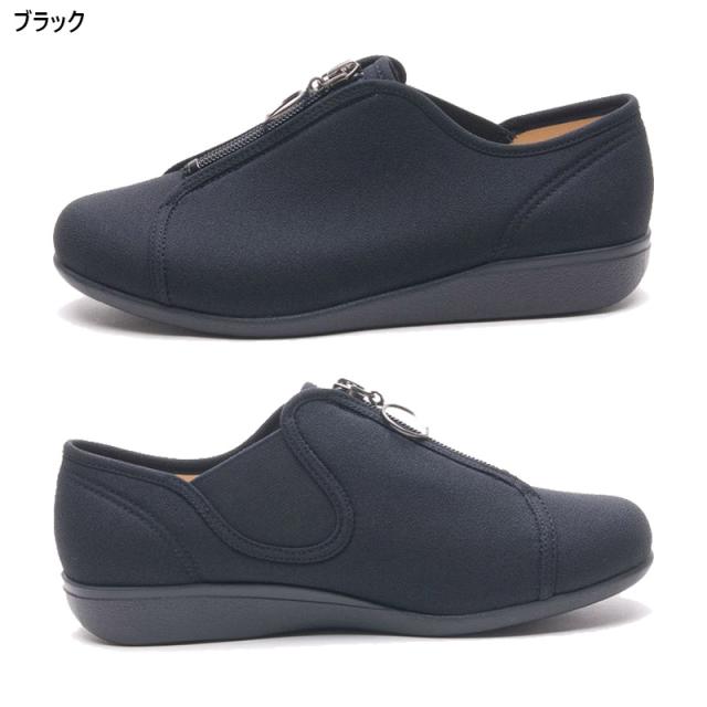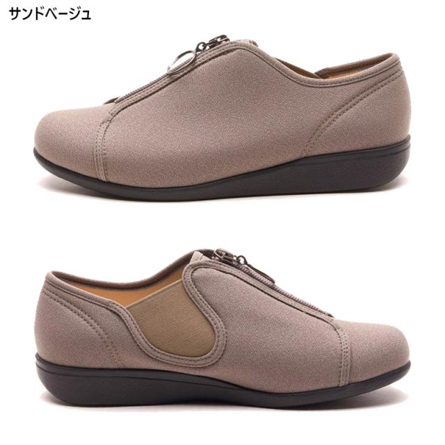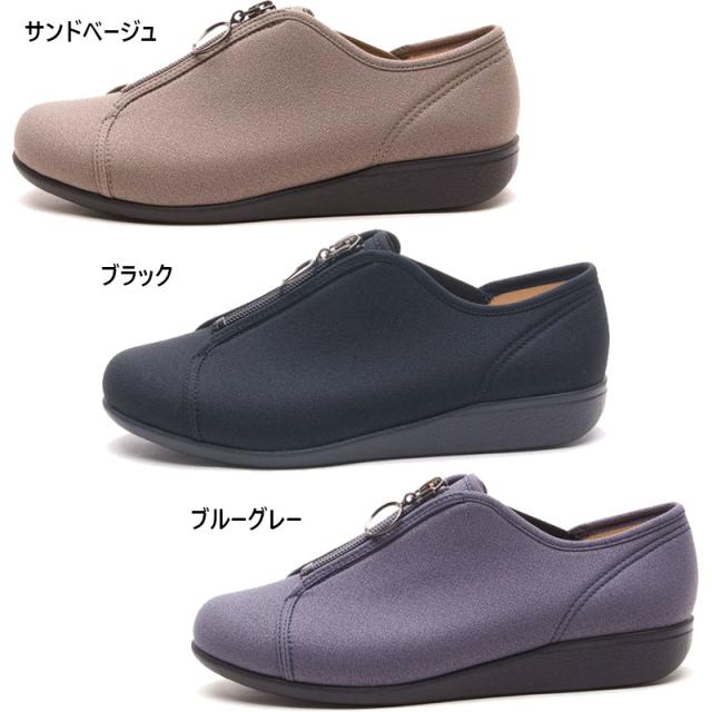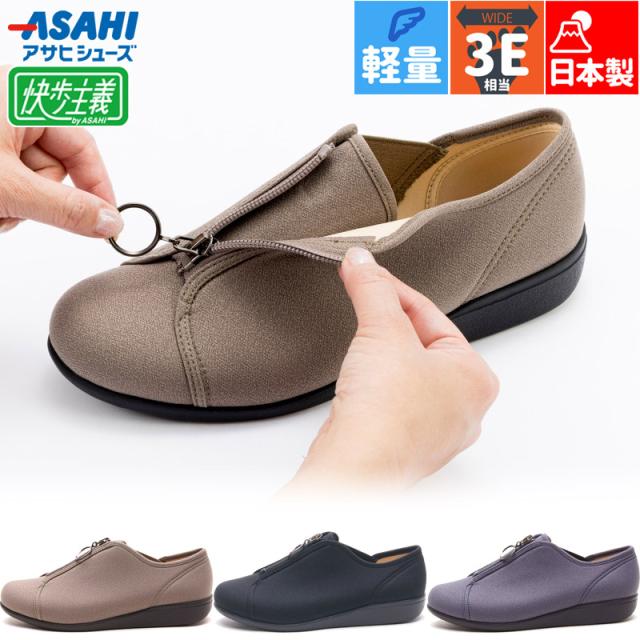 3E 幅広 ワイド 快歩主義 レディース アサヒシューズ L176 靴 シューズ カジュアル おしゃれ センターファスナー 履きやすい 履かせやすい 軽量 屈曲 日本製 ブラック 黒 グレー ベージュ 灰色 送料無料
