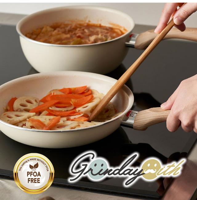 グリンデイウィズ セラミックフライパン 深型 24cm フッ素不使用 PFOAフリー IH対応 ガス ガス火 オール熱源 木柄 セラミックコーティング ディープパン ホワイト アイボリー シンプル かわいい【送料無料】