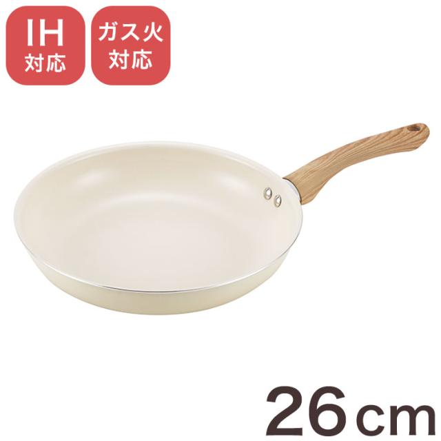 グリンデイウィズ セラミックフライパン 26cm フッ素不使用 PFOAフリー IH対応 ガス ガス火 オール熱源 木柄 セラミックコーティング ホワイト アイボリー シンプル かわいい【送料無料】
