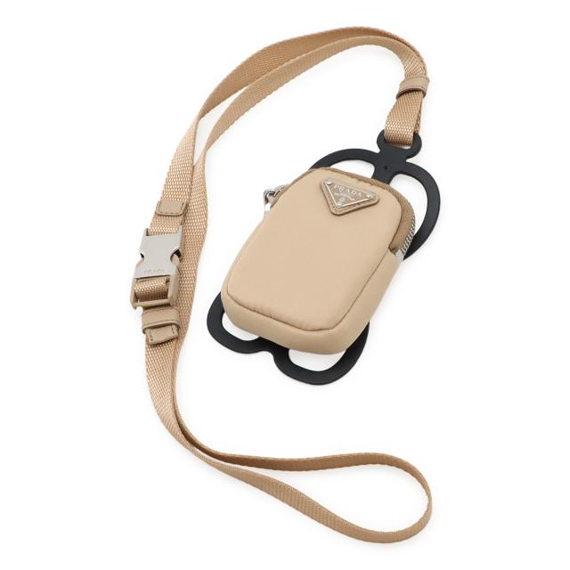 PRADA プラダ スマートフォンケース スマホケース ホルダー ネックストラップ ポーチ付き ラバー ナイロン ベージュ シルバー金具 1ZT001