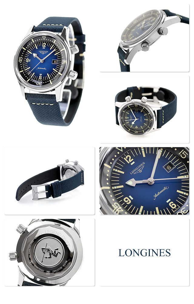 ロンジン レジェンドダイバー 自動巻き 腕時計 ブランド メンズ レディース LONGINES L3.374.4.90.2 アナログ ブルー ネイビー おしゃれ 防水 プレゼント 実用的