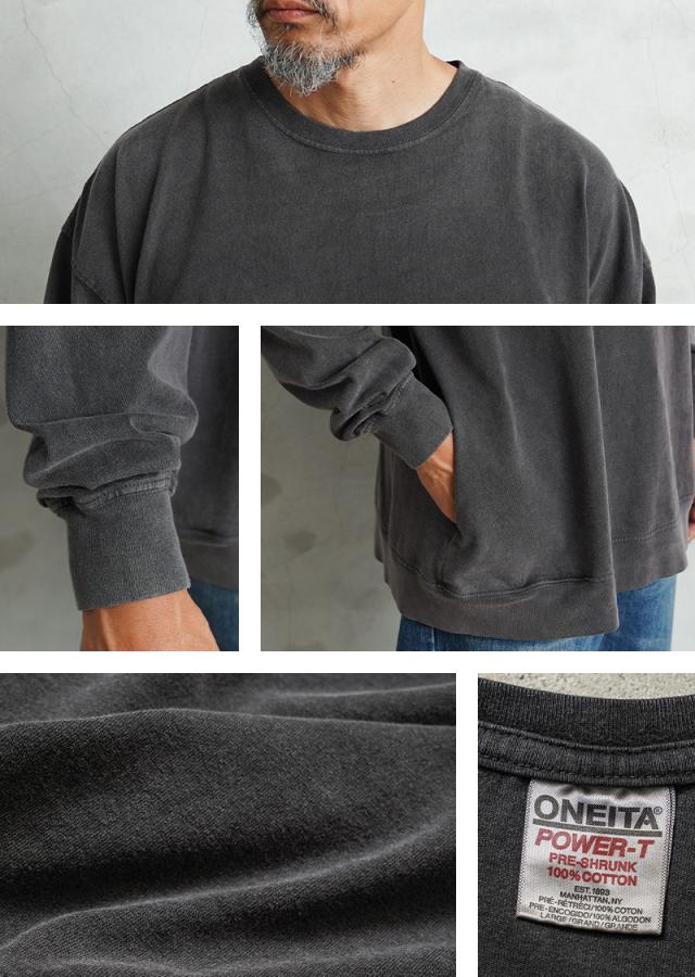 ONEITA オニータ 2523-013ON POWER-T パワーティー サイドポケット ロングスリーブ Tシャツ Chemi wash【T】【Cx】|メンズファッション アメカジ 長袖Tシャツ ロンT ケミカルウォッシュ リラックス ドロップショルダー ミドルウエイト