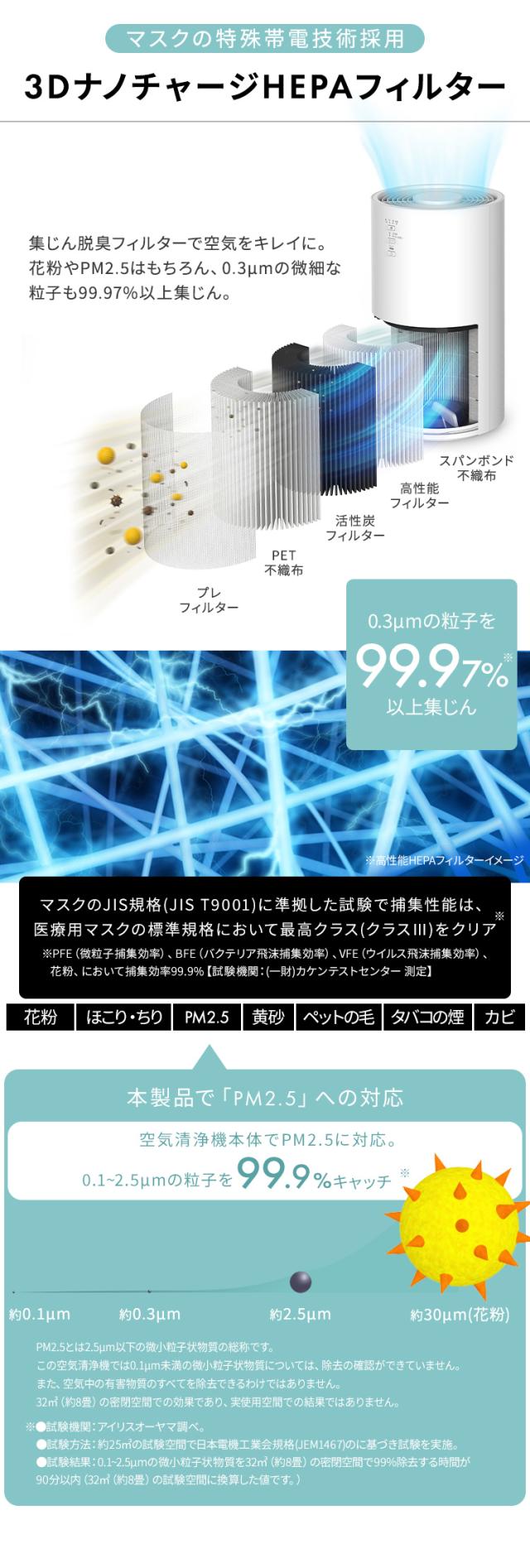 [検索用:空気清浄機 ペット 16畳 コンパクト 省エネ スピード空気清浄 集じん 脱臭 3Dナノチャージ HEPAフィルター タバコ臭 トイレ臭 体臭 ペット臭 ニオイ対策 PM2.5 ホコリ 黄砂 ハウスダスト リビング 寝室 花粉対策 家庭用 4967576790833 4967576790840 4967576790857]
