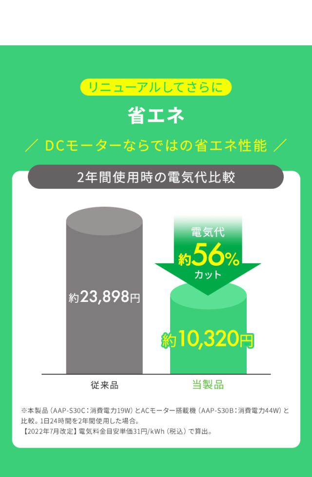 汚れた空気を一気に取り込み、キレイな空気が部屋の隅々まで素早く行き渡るスピード空気清浄。