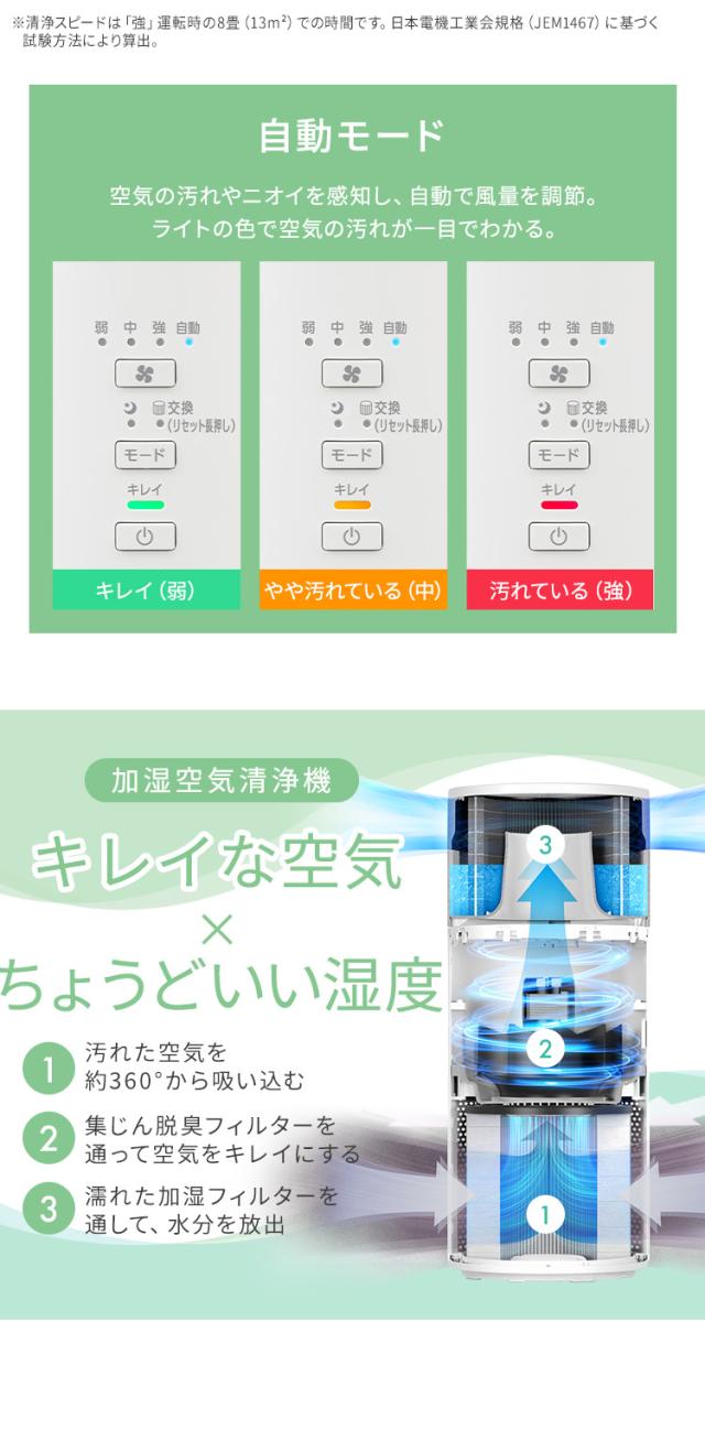 [検索用:空気清浄機 ペット 16畳 コンパクト 省エネ 加湿器 気化式 加湿空気清浄機 スピード空気清浄 丸洗い 洗える お手入れ簡単 集じん 脱臭 3Dナノチャージ HEPAフィルター タバコ ニオイ対策 ホコリ PM2.5 リビング 花粉対策 4967576790901 4967576790918]
