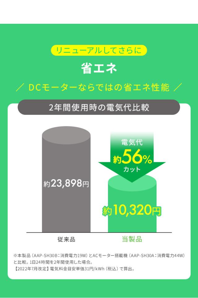 DCモーターならではの省エネ性能。