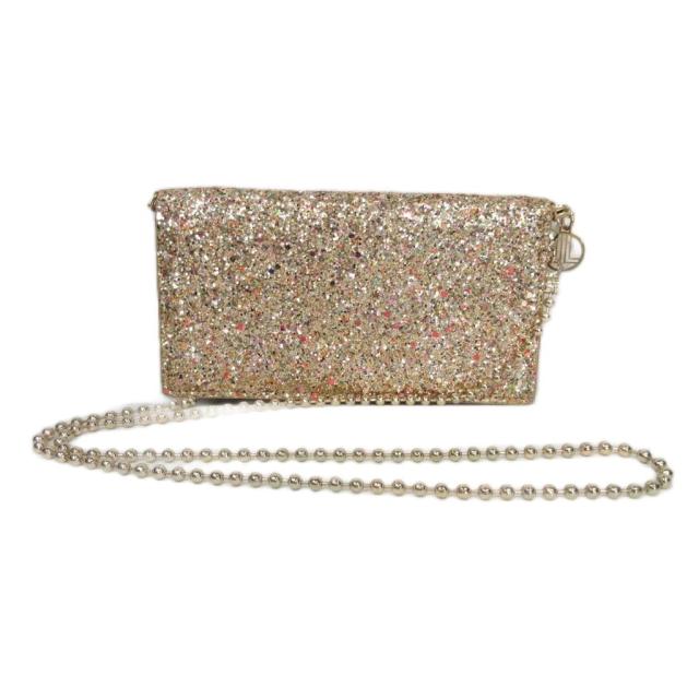 【中古】ランバンオンブルー LANVIN en Bleu マルチポシェット ショルダー付き 財布 スパンコール ゴールドカラー