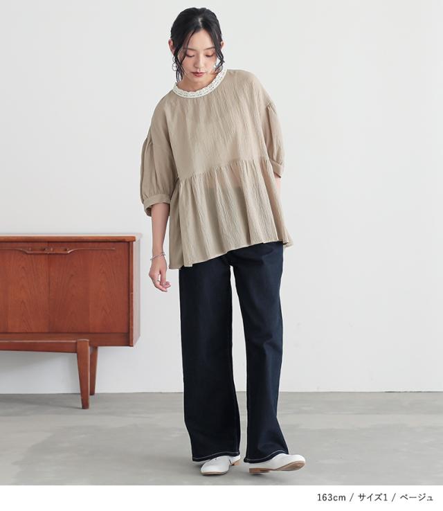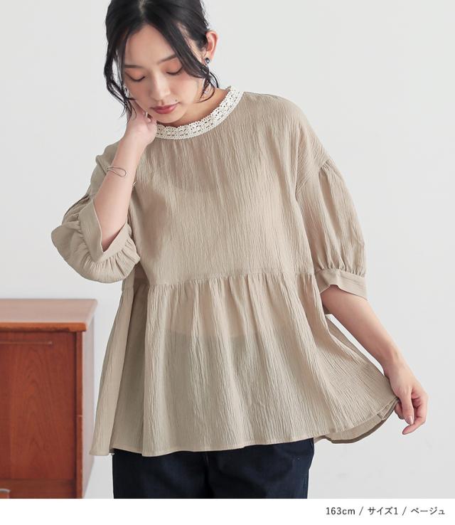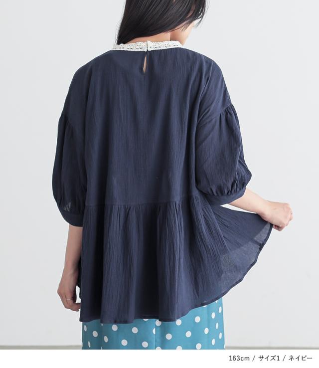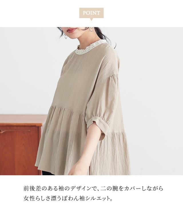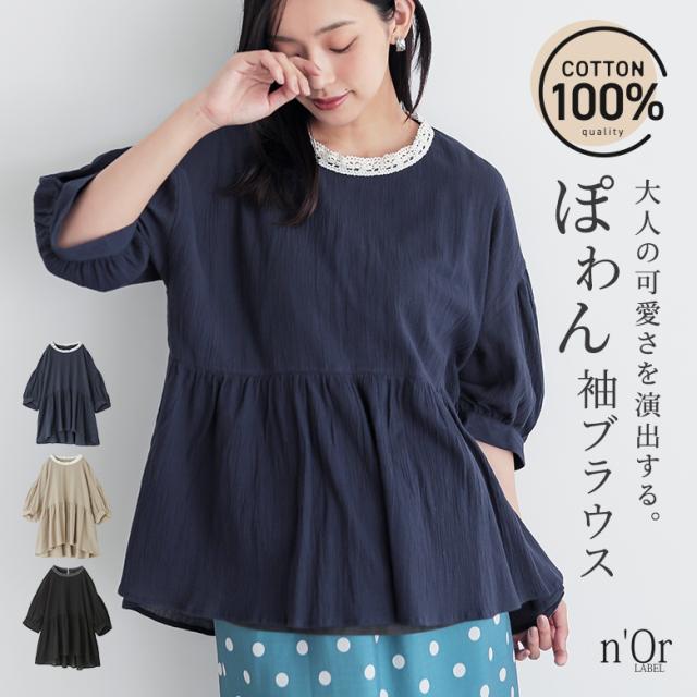 ブラウス 五分袖 七分袖 レディース トップス レース ぽわん袖 ギャザー 二の腕カバー ヒップが隠れる 春 夏 秋 【TP】 シャツ プルオーバー n'OrLABEL ノア—ルレーベル 大人女子 大人可愛い お洒落可愛い 大人カジュアル ベーシック ニュアンス ラフ エフォートレス 上品 きれいめ ナチュラル 半袖 パフスリーブ ミディ丈 ミドル丈 Aライン フレア ペプラム 切り替え 後ろ下がり 配色 無地 綿100% コットン100% 楊柳生地 シアー 透け感 おうちで洗える 薄手 ロングシーズン カジュアル シンプル キレカジ フェミニン ガーリー 可愛い系 ゆったり ゆる 楽ちん お尻が隠れる Sサイズ Mサイズ Lサイズ LLサイズ 3Lサイズ XLサイズ ぽっちゃり 体型カバー 大きいサイズ プラスサイズ 10代 20代 30代 40代 50代 60代 女子会 通学 お買い物 お出掛け 旅行 リゾート おしゃれ お洒落 トレンド 流行 ママ 母 母親 osharewalker オシャレウォーカー おしゃれうぉーかー ベージュ ネイビー 紺 ブラック 黒[ID]13to0d1