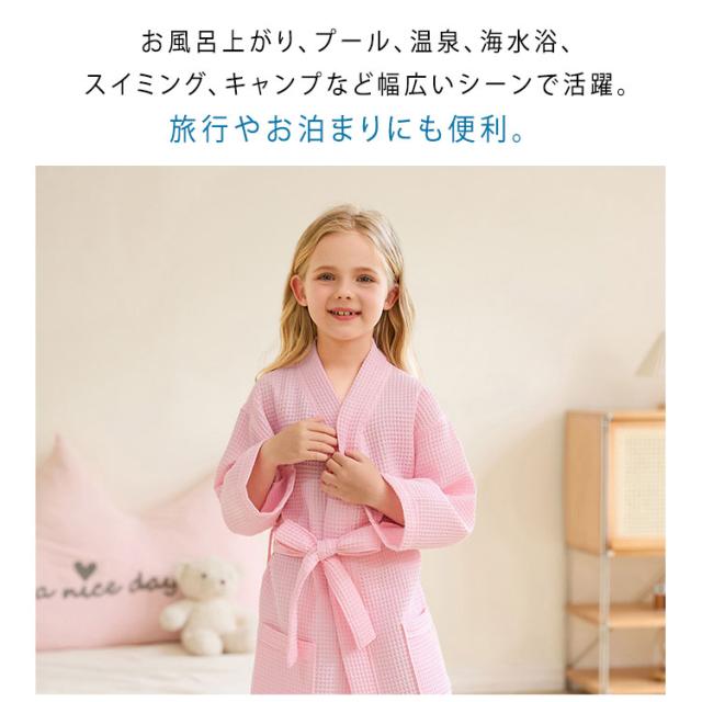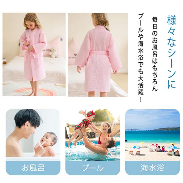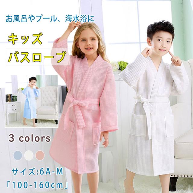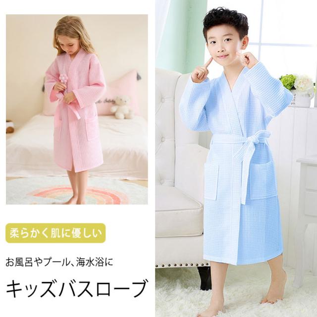 バスローブ ワッフル 男の子 女の子 凸凹ワッフル生地 ポンチョタオル 子供 タオル地 吸水 速乾 柔らかい ふんわり 肌に優しい ポリエステル お風呂上がり プール 海 海水浴 温泉 スイミング 体温調節 無地 シンプル プレゼント ギフト