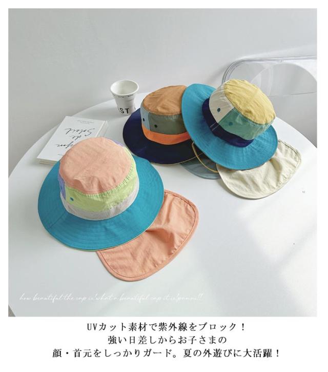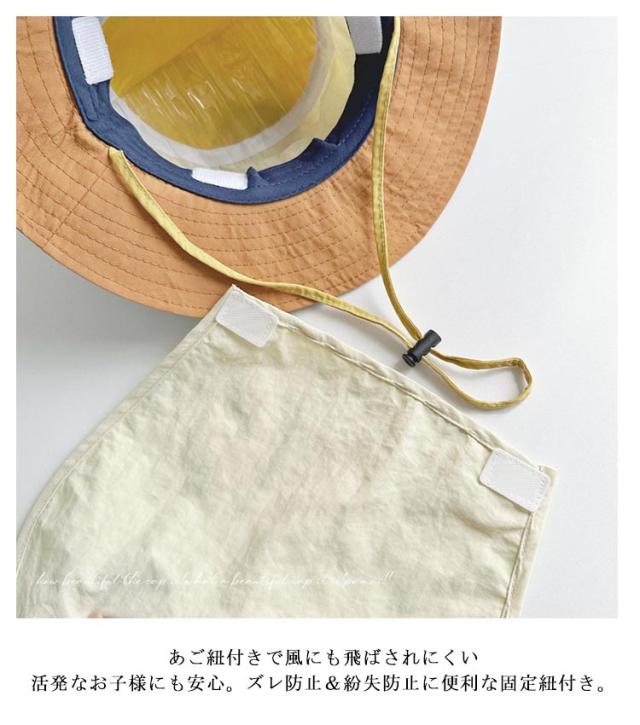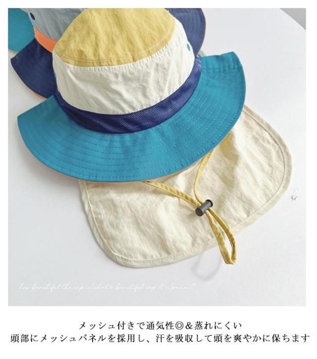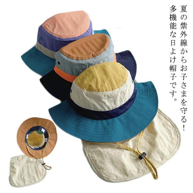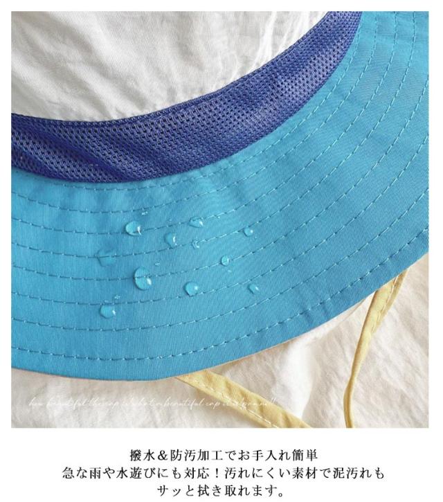 キッズ 日よけ帽子 女の子 男の子 水陸両用 UVカット あご紐 ネックカバー付き メッシュ 撥水 防汚 つば付き マジックテープで取り外し可能 熱中症対策 紫外線対策 UV対策 涼しい 日除け 小学生 保育園 幼稚園 送料無料
