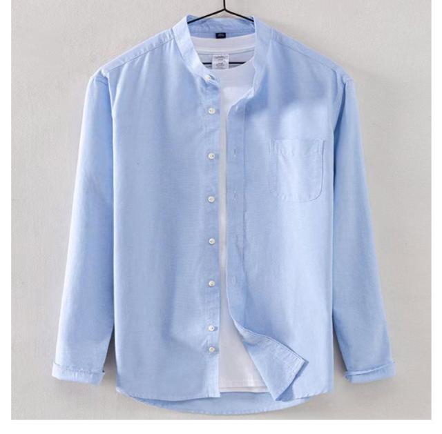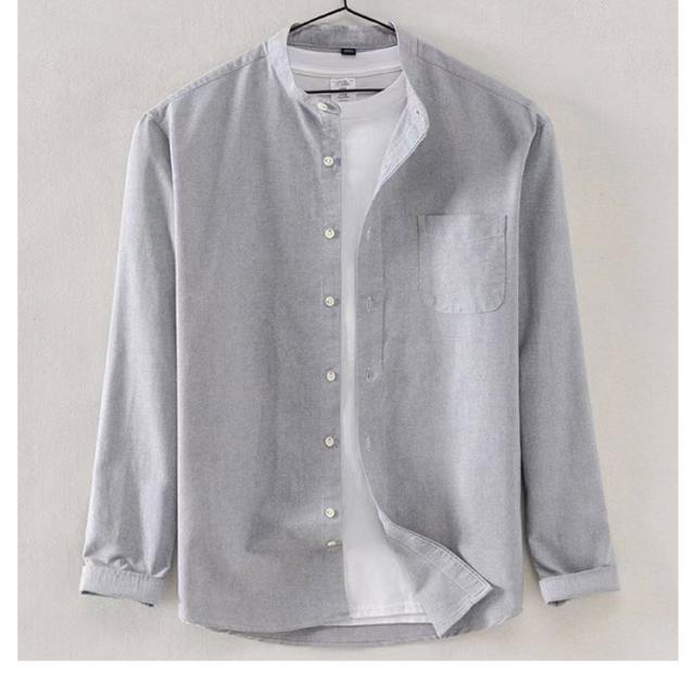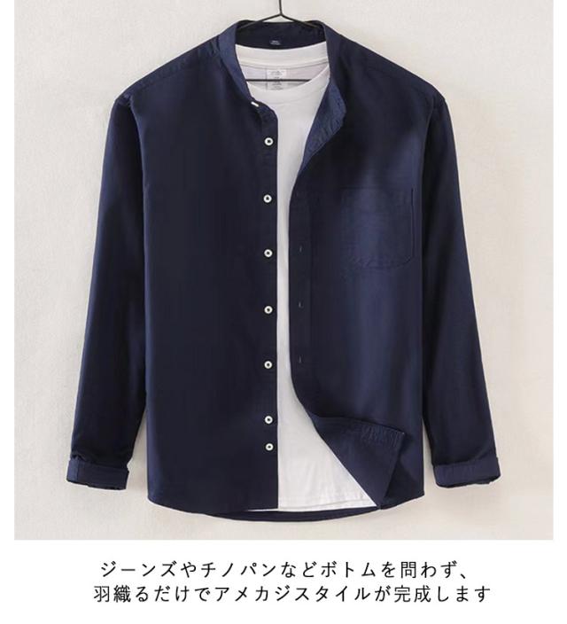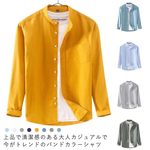 バンドカラーシャツ オックスフォードシャツ メンズ 長袖シャツ バンドカラー カジュアルシャツ スタンドカラー 立ち襟 トップス 無地 春 秋 ストレッチ ビジネス オフィス 通勤 カジュアル