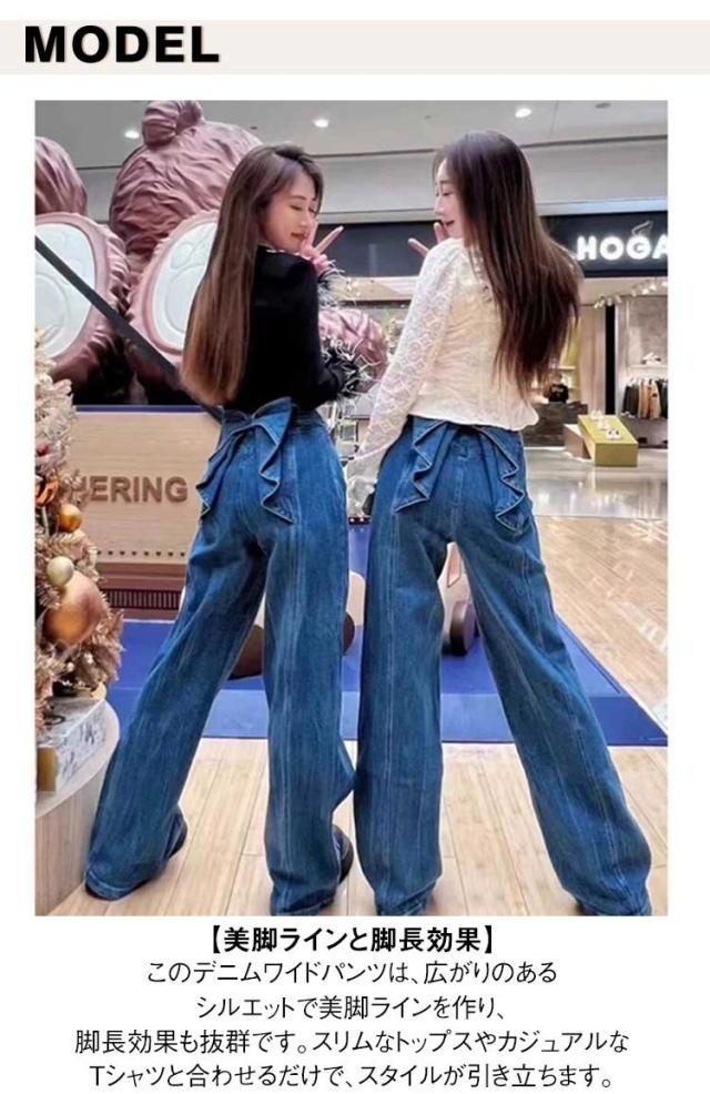 デニム ワイドパンツ ワイドデニムパンツ 春 夏 レトロ デニム バックリボン デニムパンツ ジーンズ レディース ジーパン ワイドパンツ フレアパンツ おしゃれ 美脚パンツ 脚長効果 春秋 秋冬 秋 冬 きれいめ かわいい