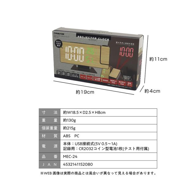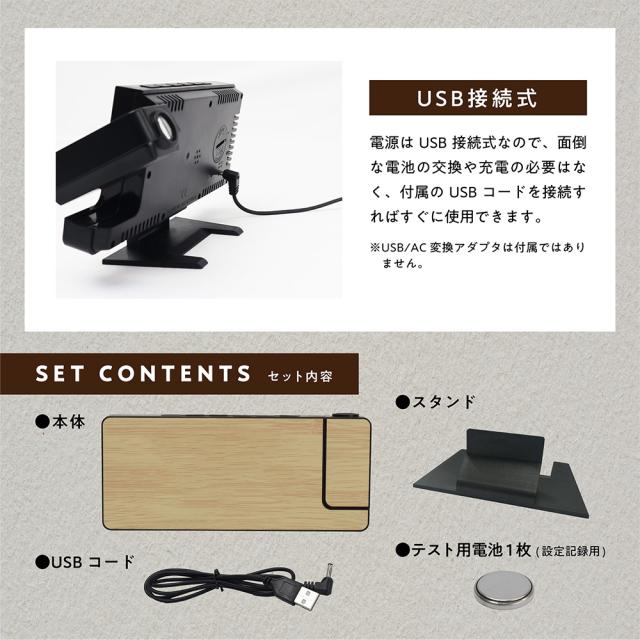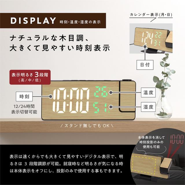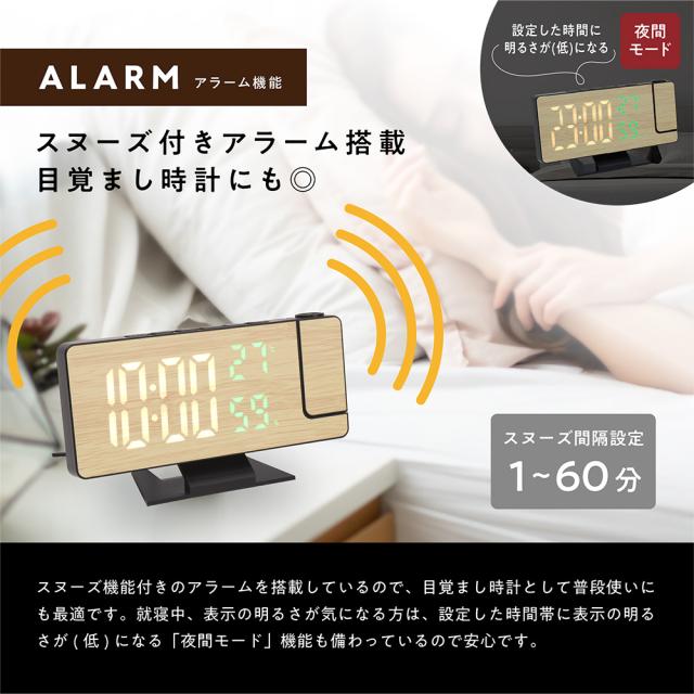 ・本体表示を消し、プロジェクターのみでの使用も可能・スヌーズ付きアラーム搭載で目覚まし時計にも