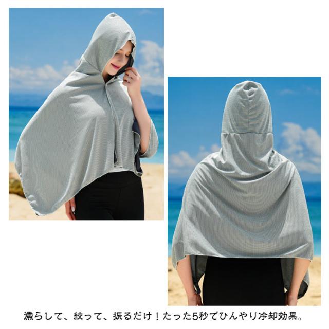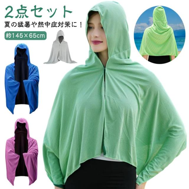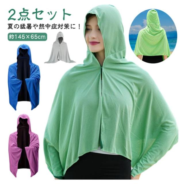 即効冷感 冷感アイテム クールタオル 冷感クールポンチョ 【2点セット】 熱中症対策 【2点セット】 冷感タオル クールパーカー 暑さ対策 暑さ対策グッズ 冷感 冷却 UVカット 紫外線対策 クーリング