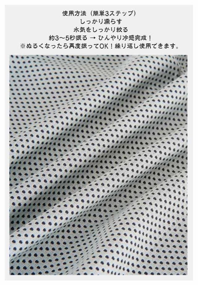 | 夏の猛暑や熱中症対策に! 濡らして、絞って、振るだけ!たった5秒でひんやり冷却効果。 通勤や通学、スポーツ観戦、アウトドアにも大活躍。UVカット機能付きで日差し対策もバッチリ! 使用方法(簡単3ステップ) しっかり濡らす 水気をしっかり絞る 約3〜5秒振る → ひんやり冷感完成! ※ぬるくなったら再度振ってOK!繰り返し使用できます。 ご使用前に 初回使用前は必ず単品で洗濯してください。色移り防止になります。 | |