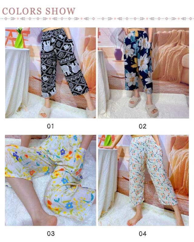 レディース ルームウェア ワイドパンツ ウェストゴム リラックスパンツ レディース パジャマ 7分丈 ズボン 全10色 柄パンツ 薄手 ステテコ サラサラ 外出 散歩 夏パンツ ワイドパンツパジャマ ゆったり ステテコ L XL 2XL 春 夏