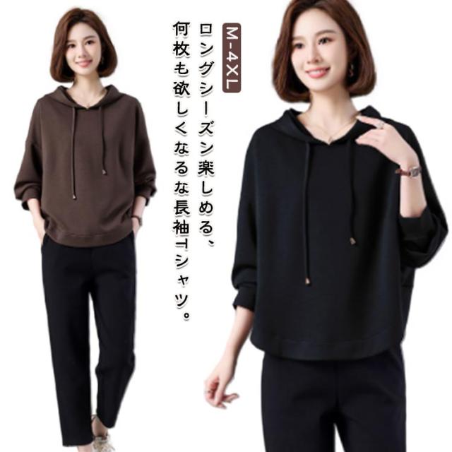 レディース カットソー ロンT 長袖tシャツ 春 冬 きれいめ 秋 薄手 スウェット プルオーバー おしゃれ パーカー フード付き 部屋着 長袖 プルオーバー ロングtシャツ 大きいサイズ パーカー 大きめ トップス スウェット パーカ ゆったり 無地 秋服 服