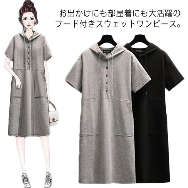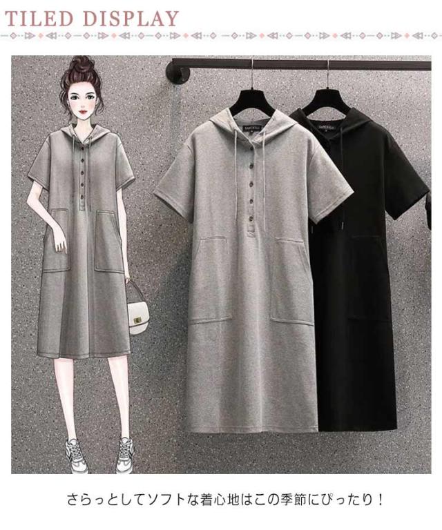 ひざ丈 Tシャツ Tシャツワンピース チュニック カットソー Tシャツワンピース 半袖 tシャツ フード付き 無地 チュニックワンピース レディース 半袖 無地 Tシャツワンピ パーカー パーカーワンピース 夏 オシャレ シンプル カジュアル 着回し