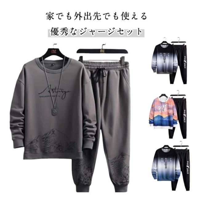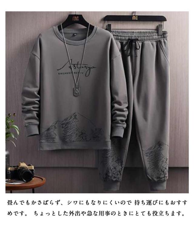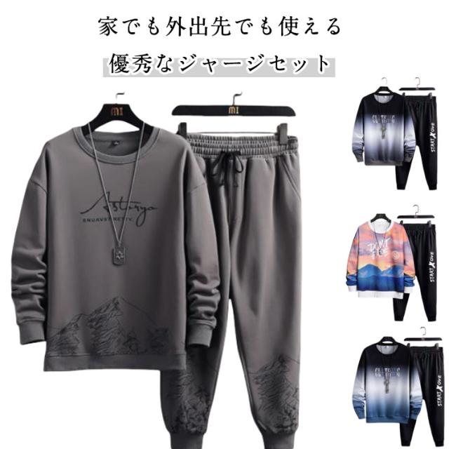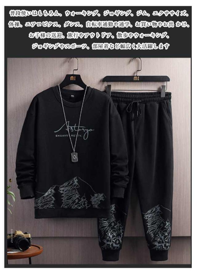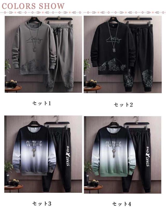 スエット スウェット 春秋 ジャージ 上下セット メンズ 春物 トレーナー 無地 長袖 ロングパンツ 重ね着風 運動着 トップス クルーネック スポーツウェア 秋服 セットアップ 部屋着 スポーツウェア ジョガーパンツ 大きいサイズ
