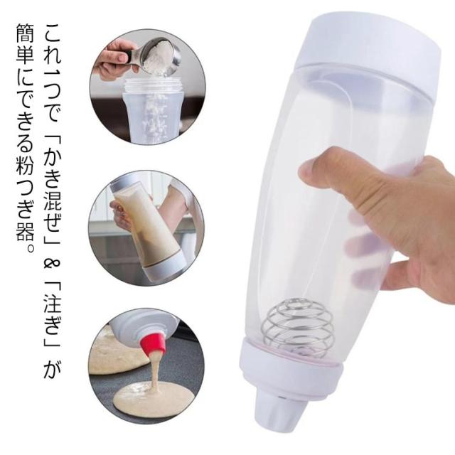 粉つぎ器 粉つぎ ボトル たこ焼き 便利 簡単調理 かき混ぜ器 振るだけ ふりふりミキサー 広口 目盛り付き パンケーキ作り ホットケーキ たこ焼き作り 振るだけ 簡単 粉つぎ器 時短 キッチン