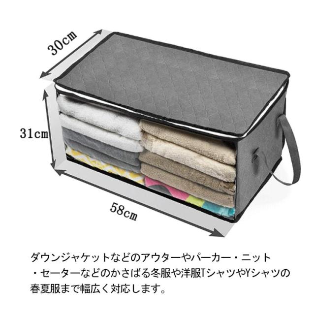 衣類収納 約幅58×奥行30×高30cm ボックス 衣類収納ケース 洋服収納 収納ケース グレー 衣装ケース 透明窓付 不織布 収納袋 折りたたみ 衣装ケース 耐久性 衣類整理 収納ボックス 保管ケース 衣装ケース 積み重ね 通気性良好 アストロ