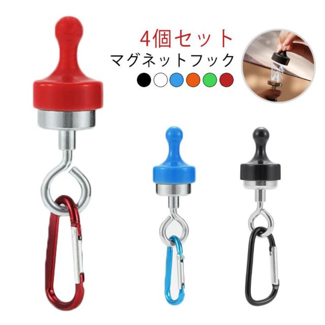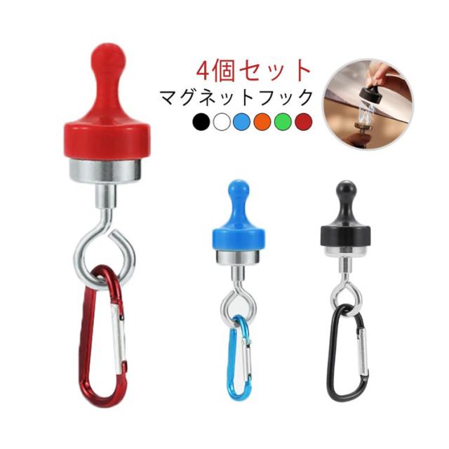 登山 リリーサー 耐荷重5kg ランタンハンガー ランタンフック アウトドア キャンプ カラビナ付 ハンガー 超強力 マグネット フック付き 小型 磁石 4個セット 軽量 アルミ 釣り 4個セット カラビナ テント タープ 焚き火 ギア トレッキング