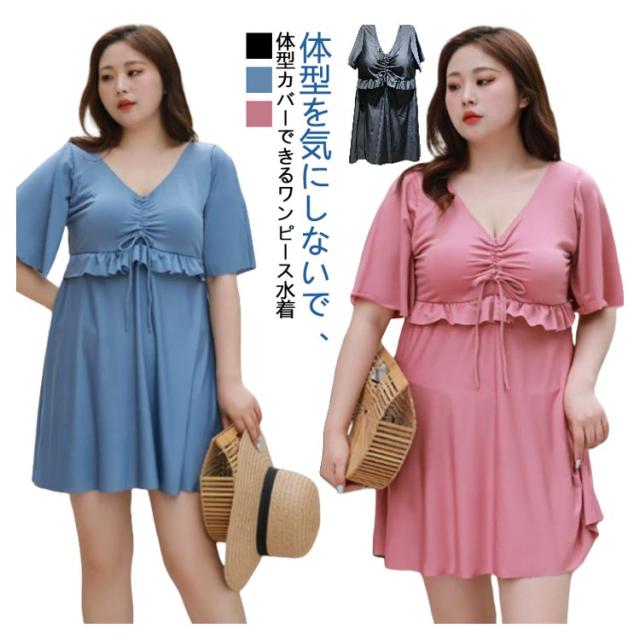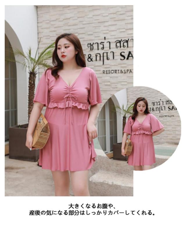 水着 ぽっちゃり水着 マタニティ 半袖 みずき 水着 おしゃれ フリル袖 海水浴 パッド付き Vネック レディース ワンピース 妊婦服 妊婦 水着 ママ水着 ワンピース 大きいサイズ きれいめ 産前産後兼用 露出控えめ 夏 スイムウェア プール