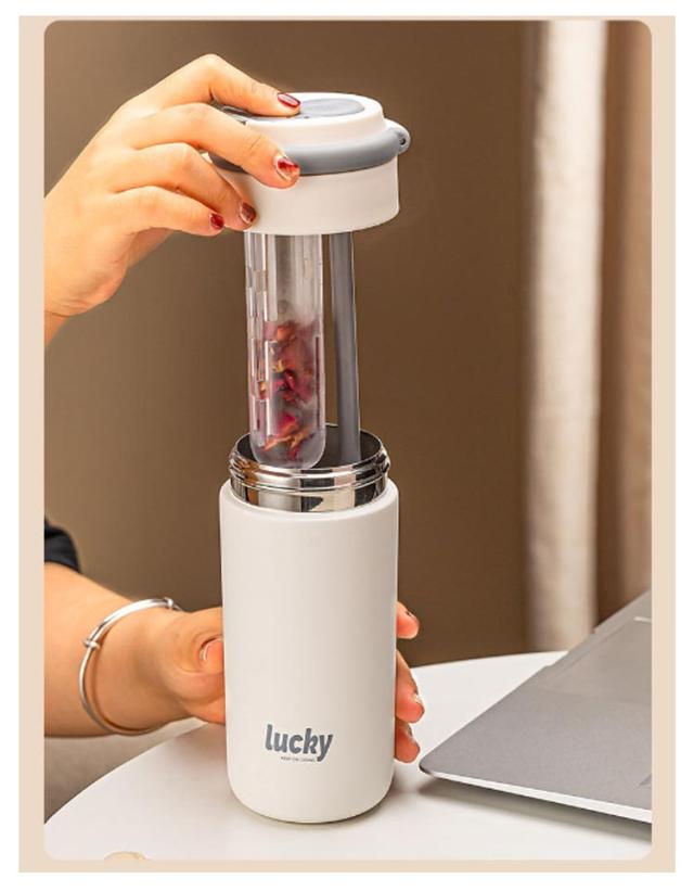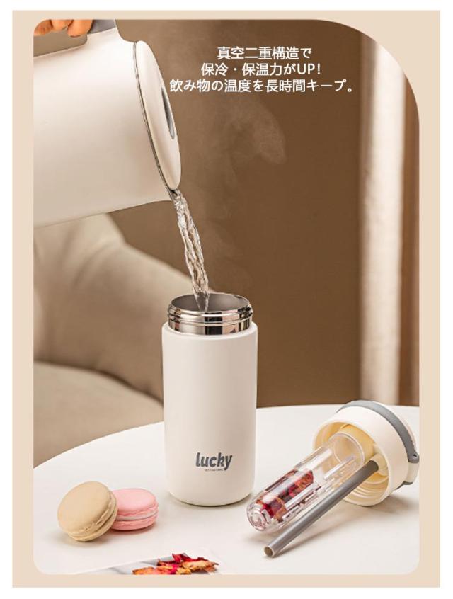 | 500mlの大容量で、頻繁に水を入る必要はありません。 真空二重構造で保冷・保温力がUP!飲み物の温度を長時間キープ。 茶こし付き、茶葉やコーヒー、果物、アイスなどを入れて、楽しく飲むことができます。 | |