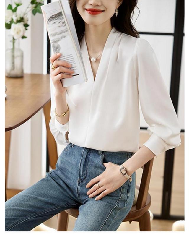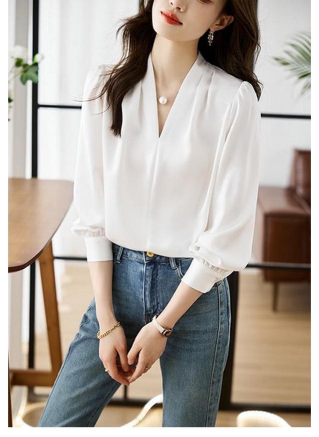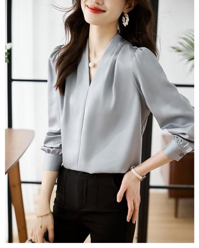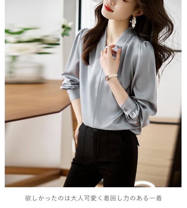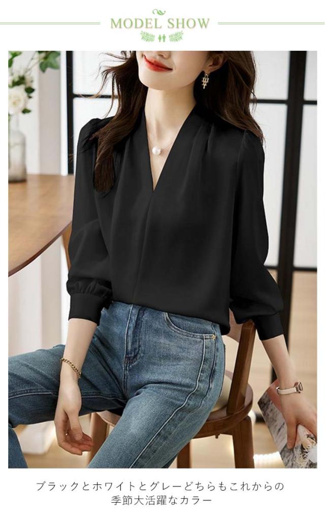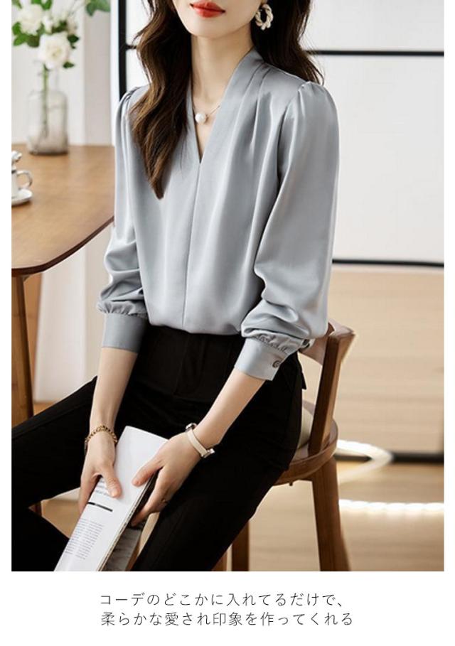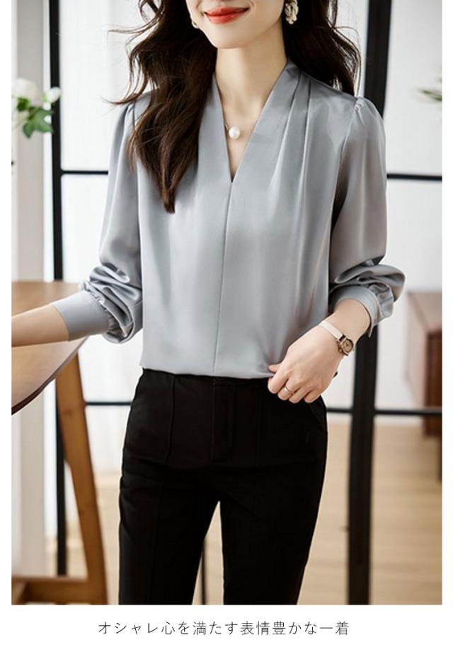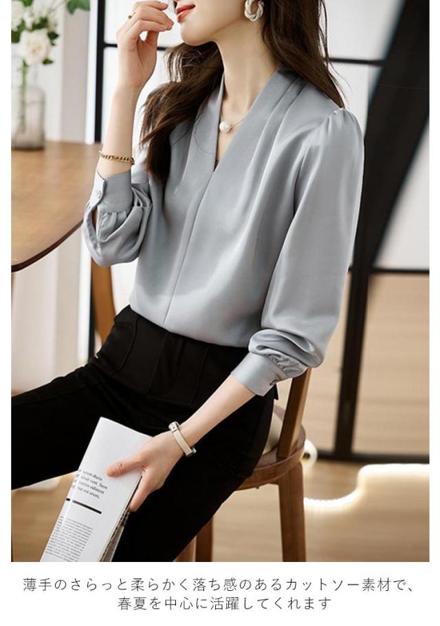 カジュアル 春 オフィス シャツ ゆったり Vネック ブラウス フォーマル 無地 OL ブラウス ブラウス レディース スキッパータイプ スリム Tシャツ 長袖 薄手 セクシー シースルー 秋 通勤 トップス レディース 秋 おしゃれ 上品