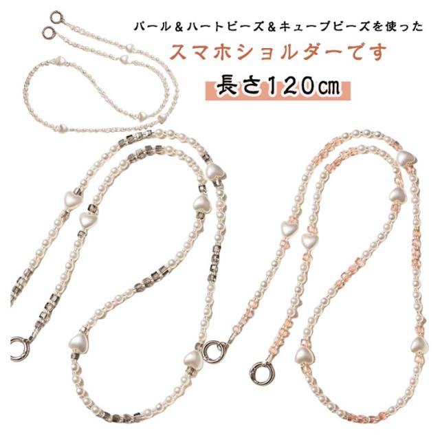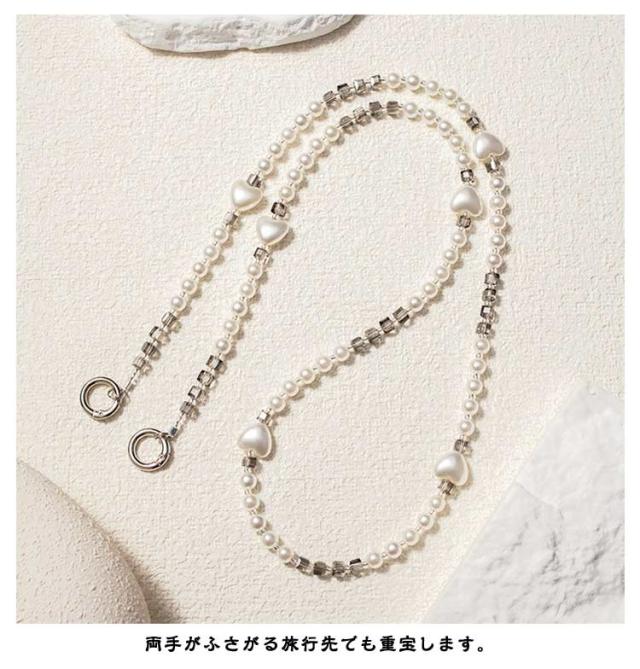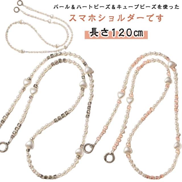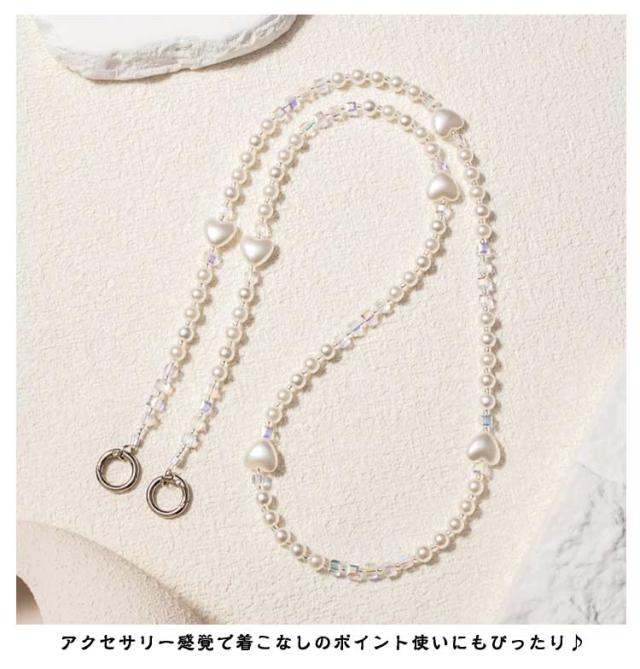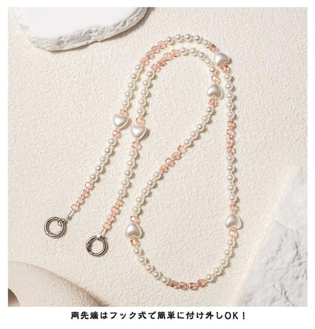 パール ストラップ ビーズ 肩掛け 首掛け 大人 かわいい ビーズストラップ スマホショルダー 斜めがけ ハート スマホストラップ スマホショルダーストラップ ショルダーストラップ 携帯ショルダー 挟むだけ 韓国風 レディース