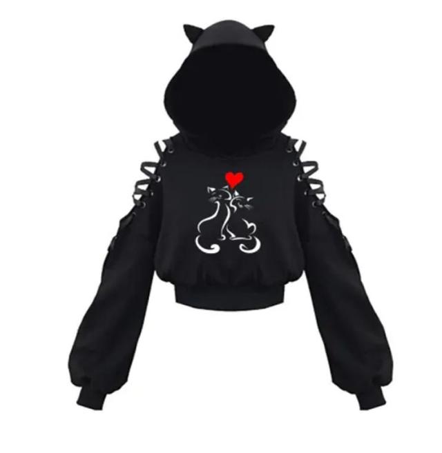 ショート丈 レディース パーカー 地雷系 トップス 猫耳 肩出し フード付きパーカー ねこみみ ねこ耳 トレーナー 猫耳 スウェット 韓国系 ストリート系