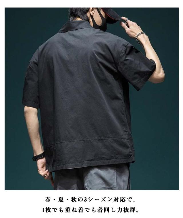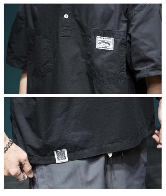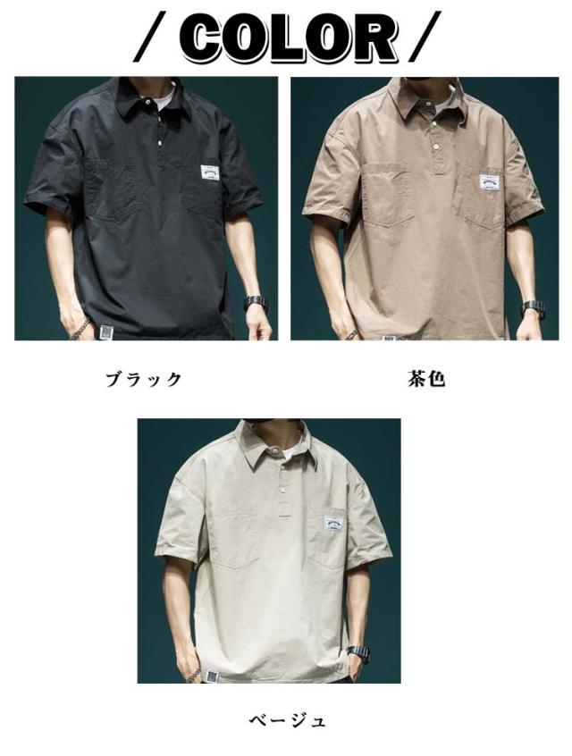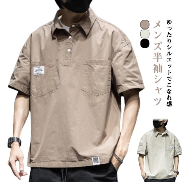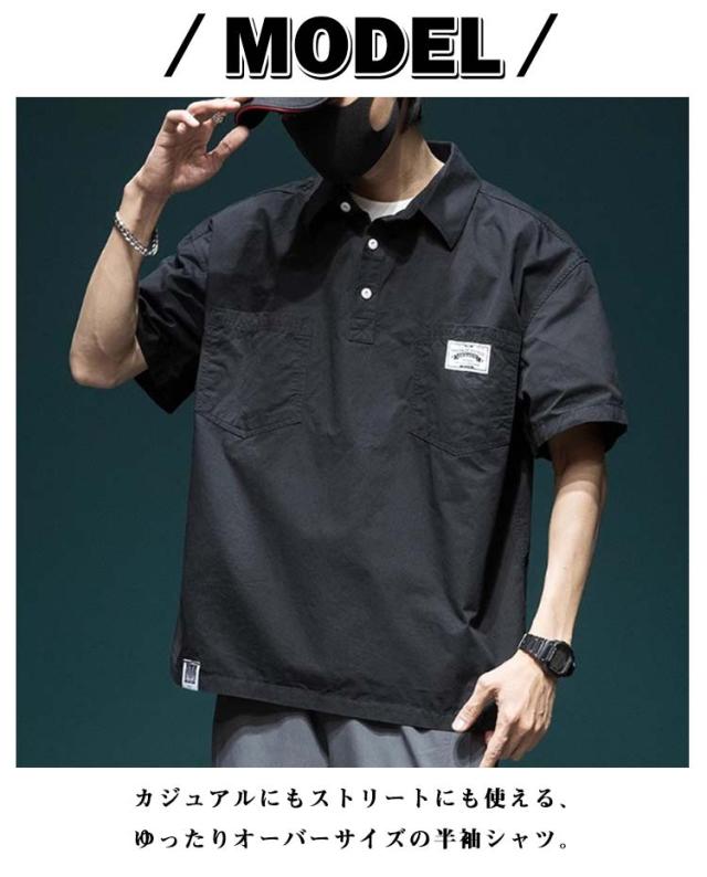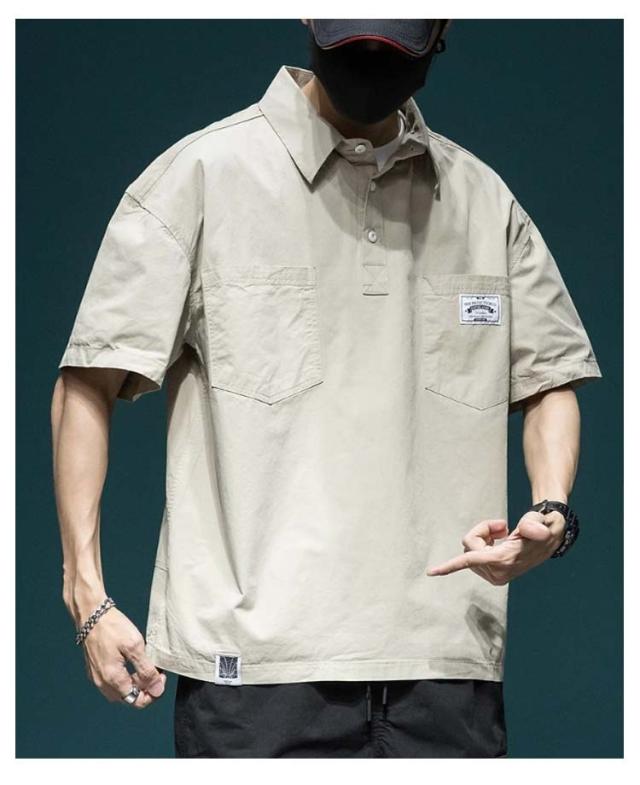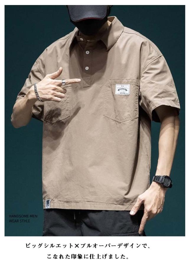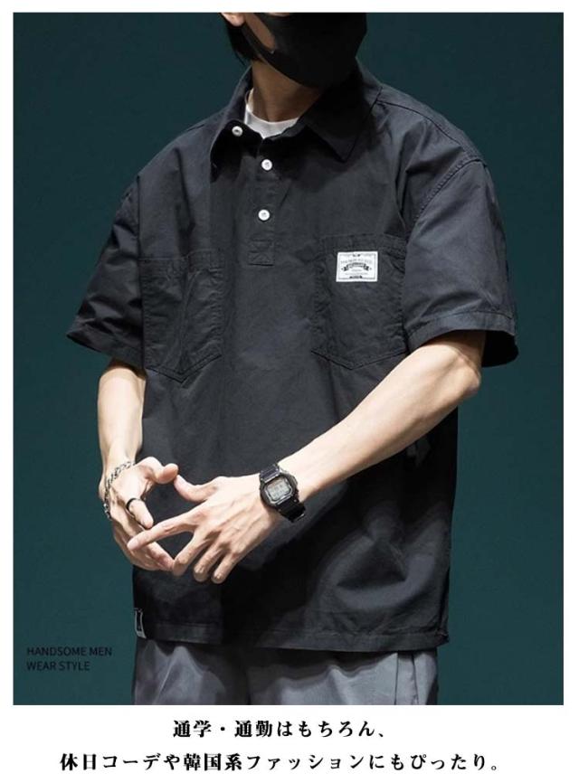 半袖 ポケット付 ゆったり ポロシャツ シャツ カジュアルシャツ プルオーバー ミリタリーシャツ ビッグシルエット メンズ ハーフボタンシャツ オーバーサイズ 通学 通勤 春夏秋 トップス ストリート 韓国ファッション 大きいサイズ